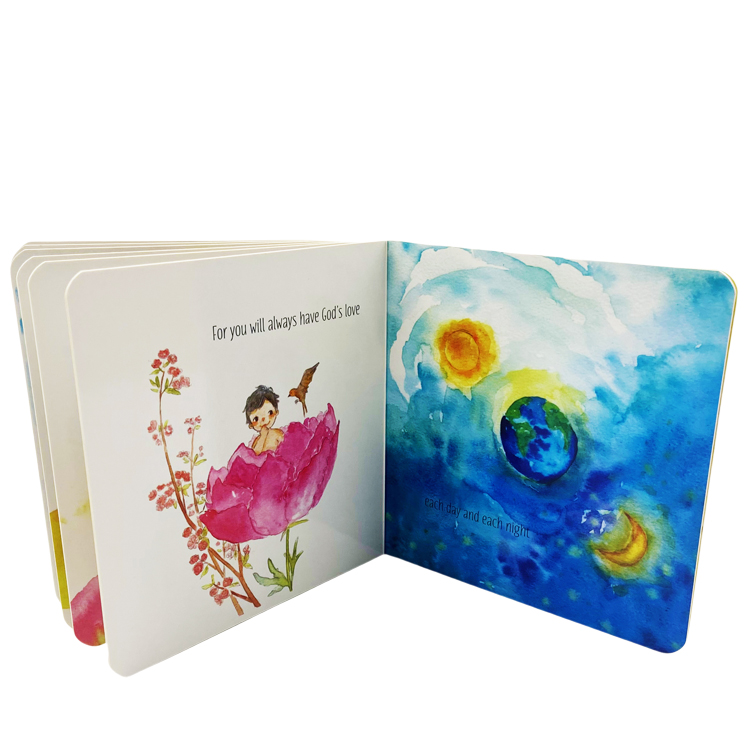 Spread: 8 spread including cover Size:14.8x 14.8x 1cm Material and Printing:350gsm C1S white card+350gsm C1S paper , 4C/4C printing,gross lamination |