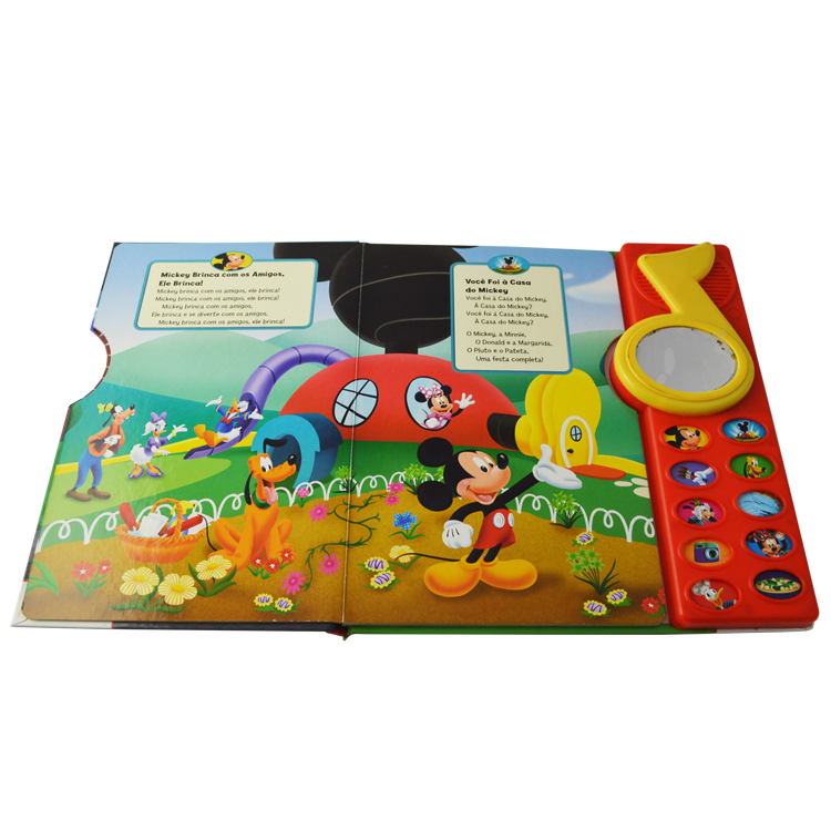 Cover: 128gsm artpaper, 4C/0C printing with gross lamination + 2mm grey board +the sound buttons fix on the back cover inner pages: 400gsm grey cardboard + 400gsm grey cardboard, 4C/4C printing,gross lamination, Binding: hardcover board book binding packing: one carton weight not exceed 10kgs |
