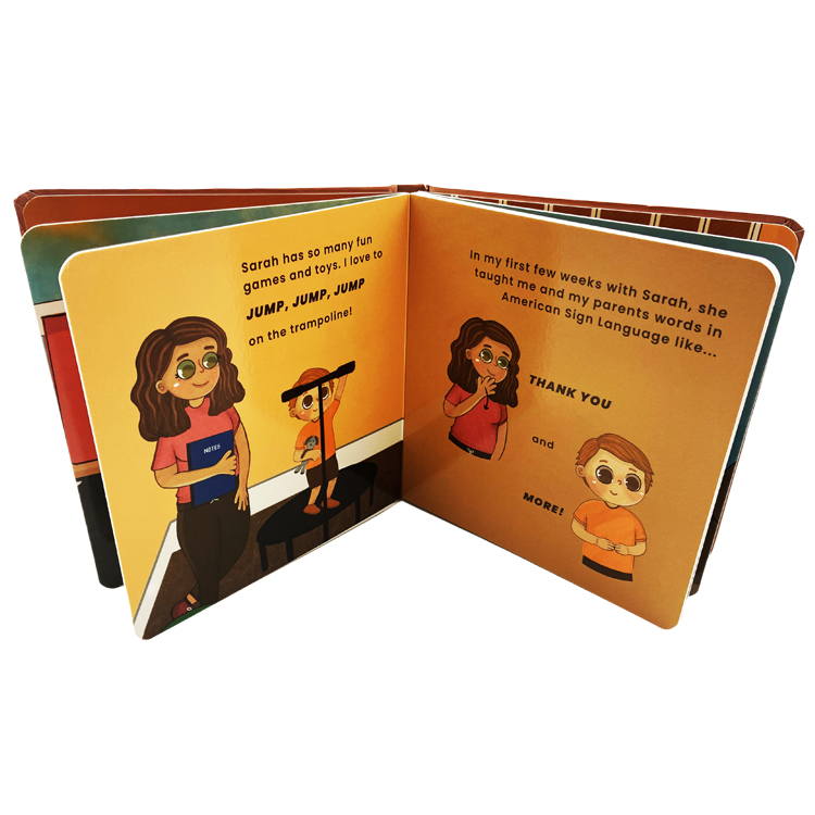 Size: 18.5 x 17.8 x 1.8cm Printing: Cover:128gsm artpaper, 4C/0C printing with gross lamination+2mm grey board Inner pages: 7 spread not including cover, 350gsm C1S paper +1mm spacer+ 350gsm C1S paper, with 4C/0C printing, gross lamination. Binding: hardcover boardbook binding Packing: carton weight not exceed 10kgs |